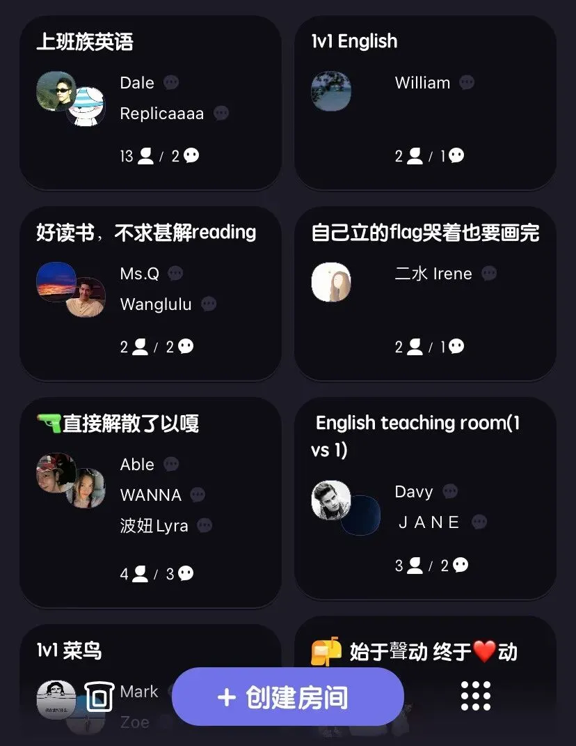 简单说这就是一个线上英语角,用户可以自建和加入练习房间,房主有管理权限,用户可以举手发言,整理类似于英语角的Clubhouse。