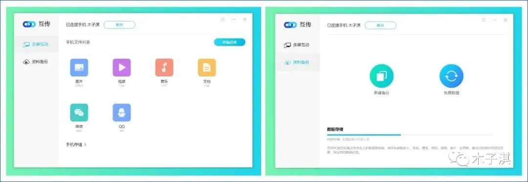 你还可以在电脑上拖拽文件传输到手机,点击任意手机文件复制到电脑,支持手机文件管理,还支持资料备份功能,你可以备份手机数据到电脑,备份过的资料还可以轻松还原,保证数据安全,你还可以设置备份目录。