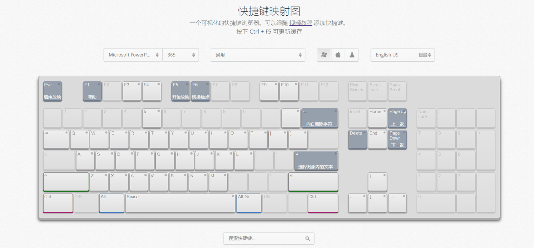 它支持的快捷键显示和学习包括:Windows 系统快捷键、Microsoft Word 、Microsoft Excel 、Microsoft PowerPoint 、VS Code 等,如果是软件快捷键学习的话你还可以选择切换系统,包括:Windows 、Mac 、Linux 。