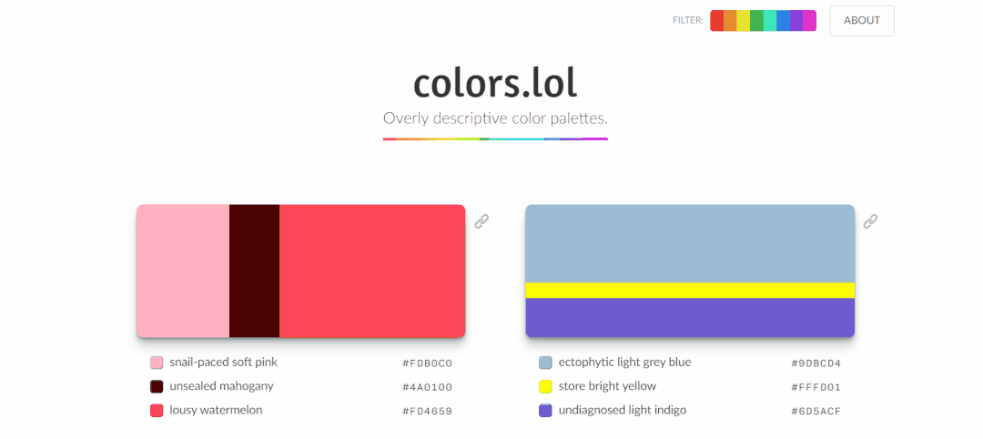 设置那里往底部滑动,还可以看到一个非常实用的配色网站,提供了丰富唯美的配色,你可以筛选配色,查看并复制每种色彩的 16 进制颜色代码。
