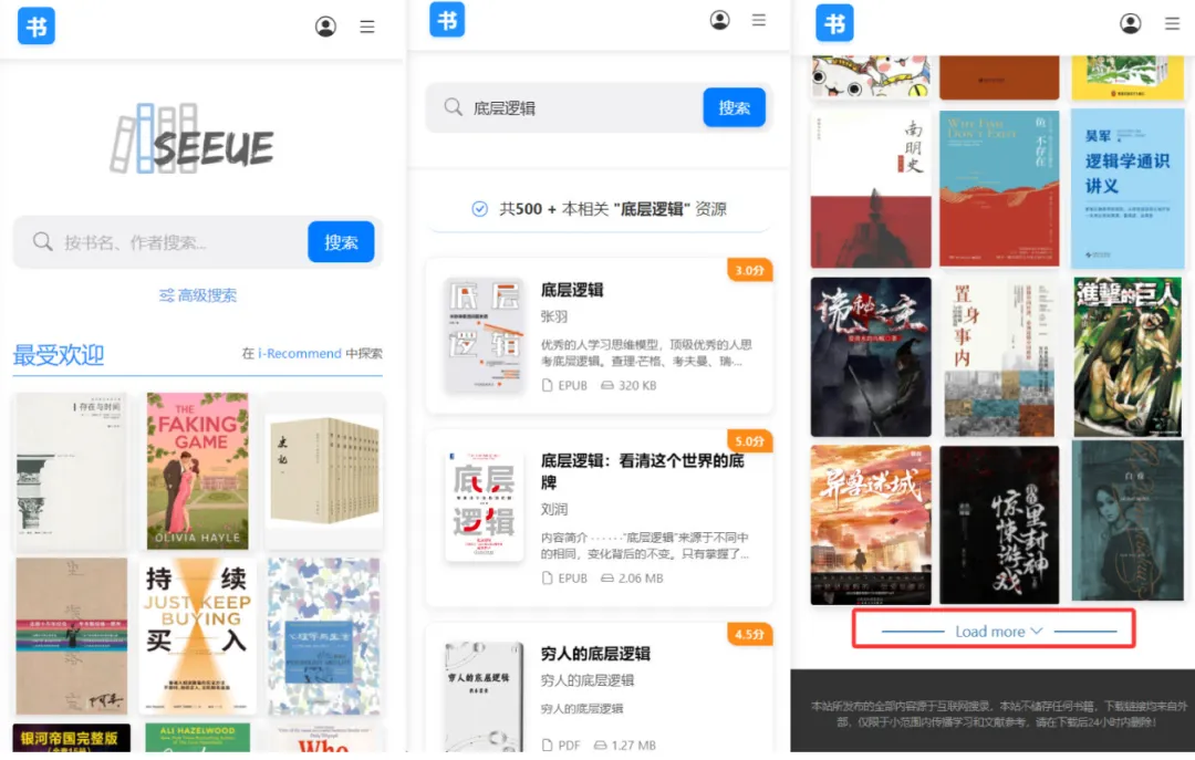 1、首页加入了热门书籍加载更多的功能,可以看到最近书友都在读哪些书