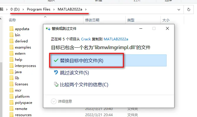 18.将bin文件夹粘贴到软件安装路径下(第10步设置的路径),点击“替换目标中的文件”