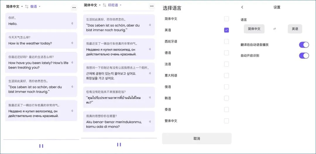它目前支持多达 10 多种语言,包括:中文、英语、泰语、印尼语、俄语、法语、德语、意大利语、韩语、日语等。