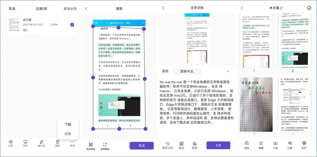 它支持文字识别功能,支持图片提取文字,识别速度非常快,识别准确率很高,支持复制识别结果。