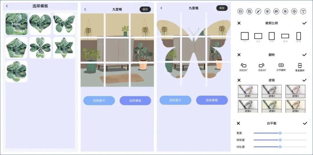 它支持切图功能,支持九宫格切图,支持多个图形模板切图;它支持图片拼接功能,可以将多张图片拼接成一张图片。