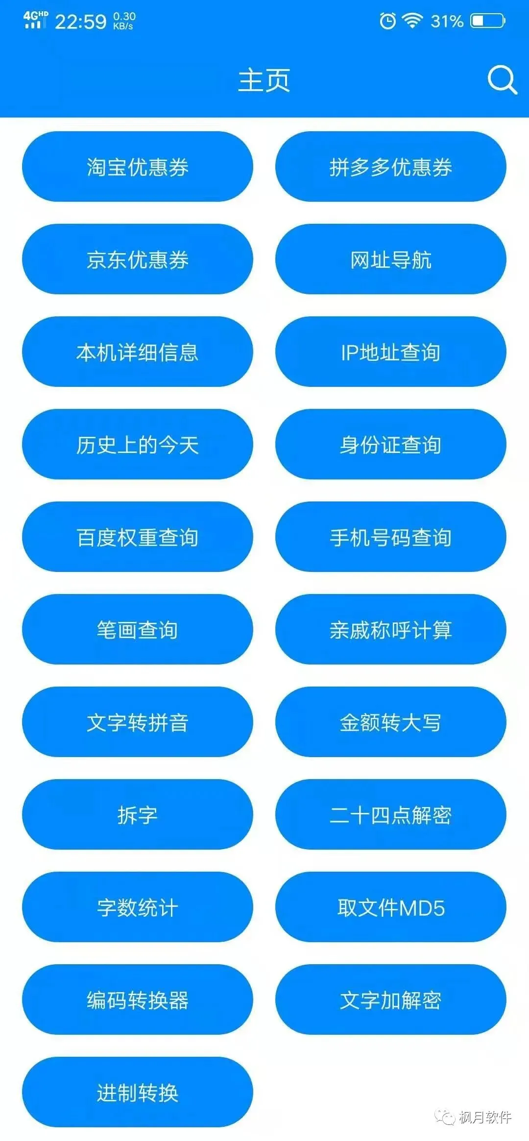 查询工具,也是比较实用,比如历史上的今天、身份证查询、手机号码查询、亲戚称呼计算、金额转大写等等。至于某些优惠券查询、个人不大感冒,就不推荐了。