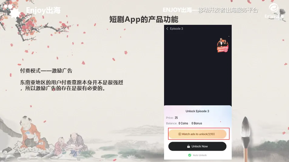 通过对这些热门短剧App的深入分析,我们可以看到,这些应用通过其创新的内容、引人入胜的广告策略和精心设计的用户体验,在竞争激烈的市场中获得了成功。它们不仅为用户提供了丰富多样的娱乐选择,还展示了数字媒体行业如何通过结合内容创新和市场策略来吸引全球观众的典范。这些成功案例为短剧行业提供了宝贵的经验和启示。(本文为11月10日Enjoy出海线上直播分享内容,点击“阅读原文”查看直播回放)