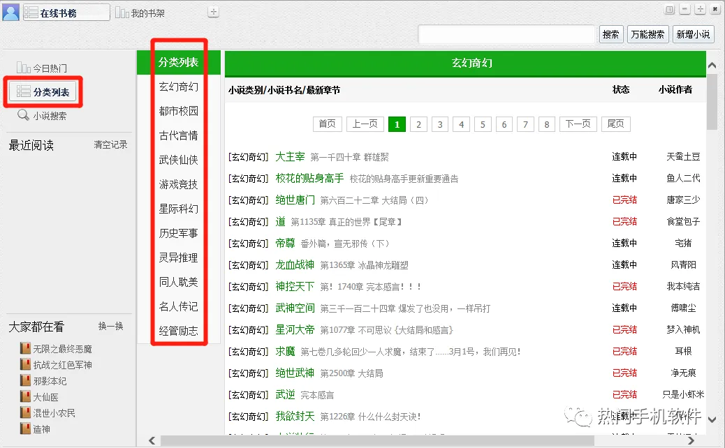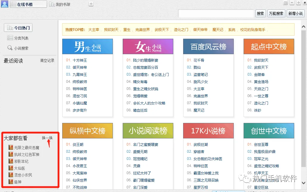 实在不知道看什么书的时候怎么办?你可以点击左下角的“大家都在看”,这里全是大家都在看的热门小说,都在看的书,相信质量肯定不会太差。