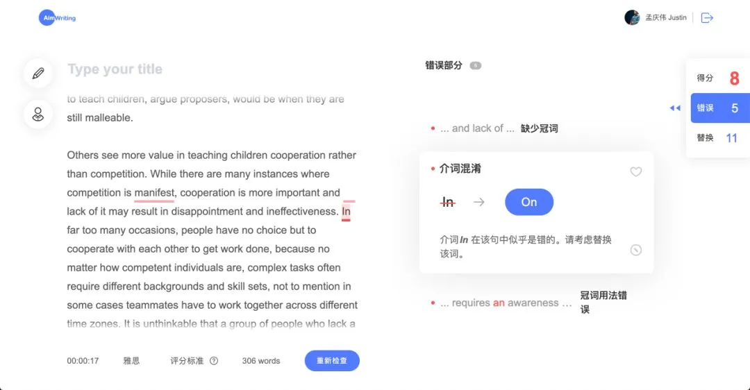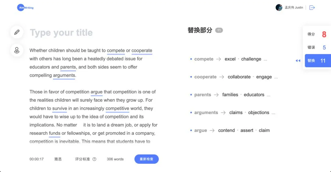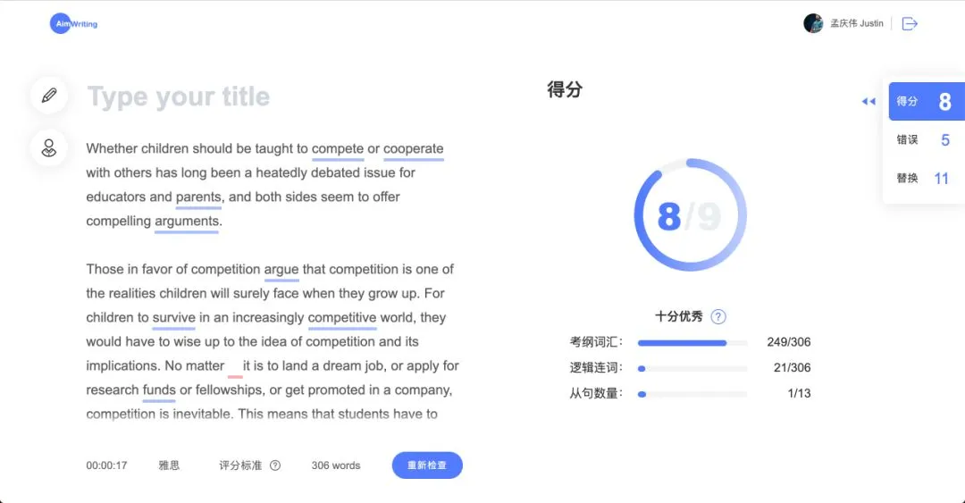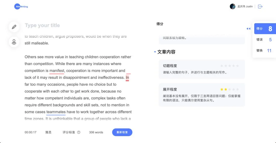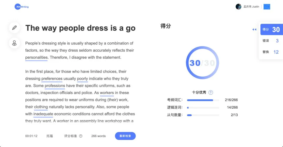 我们上传了雅思、托福和其他这三个类型的作文,进行了一番测评,选出了几个最值得使用的功能,并为大家总结了注意事项。
