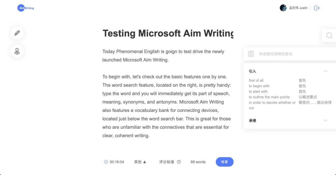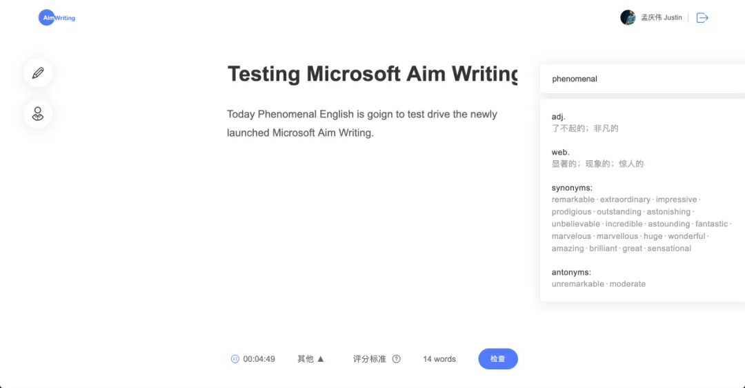 最近,微软亚洲研究院研发并升级了以前的作文打分功能,将其正式命名为“微软爱写作”(Microsoft Aim Writing)。我和同事亲自做了测评,推荐给大家。