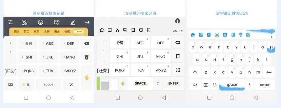 森林集有很多免费皮肤,个人在用的有“得·第二篇、花见、泊”三个(对应上上图)。选择原因是它们在顶上提供了“全选、复制、粘贴、粘贴板”的快捷按钮,而不同皮肤还会提供各种上下左右滑动快捷操作↑,照样可以完成各种操作。稍加适应,极其舒服。
