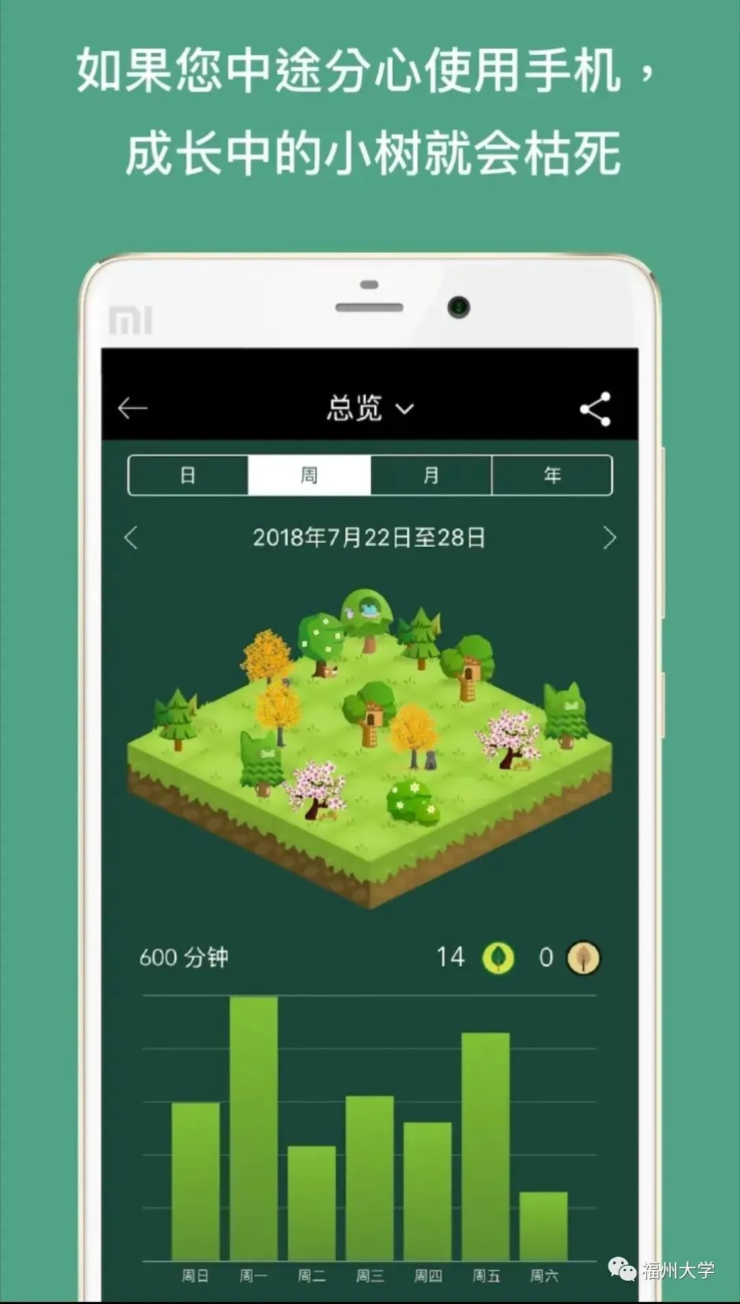 “一寸光阴一棵树”,你专注的时间,都由一颗颗形态各异的树记录下来了。透露着极简设计的界面令人耳目一新,在设立的专注时间内不玩手机,即可获得一颗树,同时获得金币,金币可以兑换多样树种,而且只要累计够多,还可以获得一颗属于你的真树。还等什么?上号,种树!