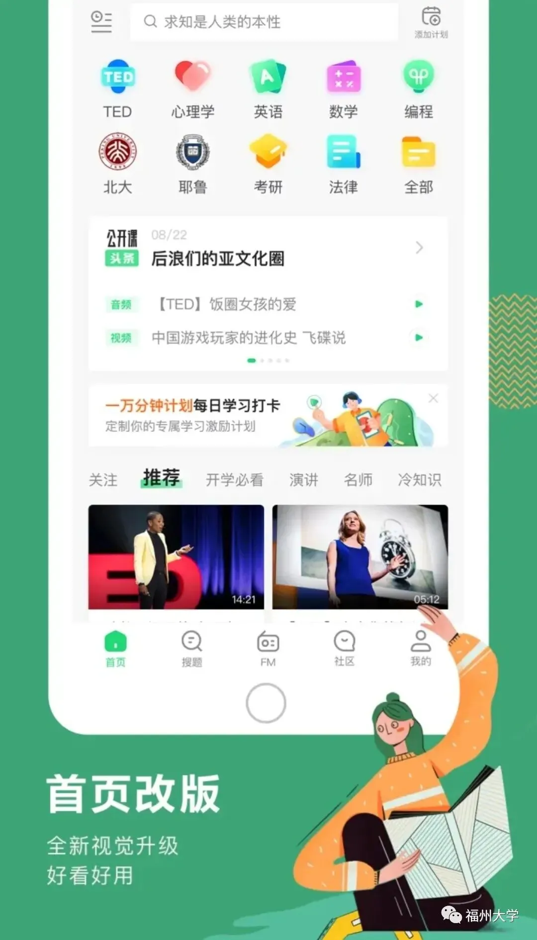 各类教学资源的聚集地,涵盖面也是极其广泛,同时拥有计时功能,这里也是看TED视频的不二之选,网易公开课还与中科院、科普中国,国内高校等多方合作,力求打造一个适合各类人群学习的平台。求学之路漫漫,带上这个APP!