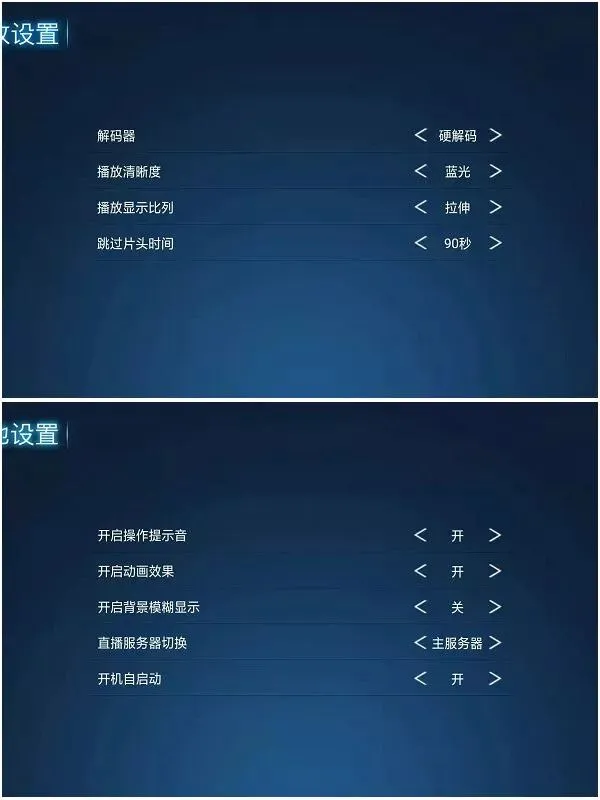 三,设置:叶子TV可以自行设置解码方式以及选择清晰度和片头跳过时间,最重要的是叶子还有自己的服务器,大家可自行切换