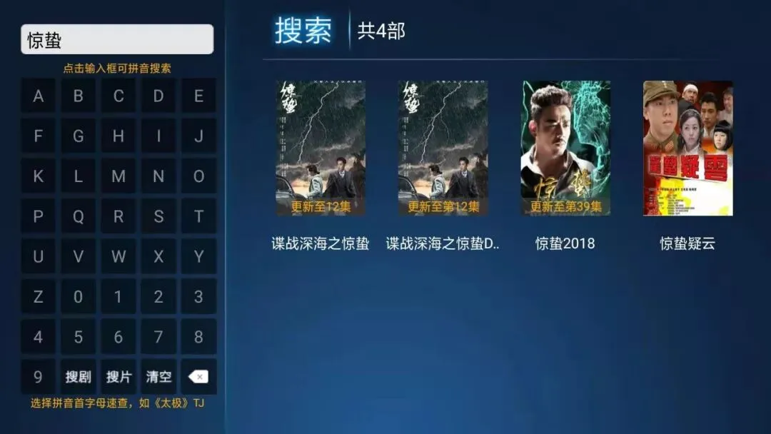 四,搜索功能:搜索方式是影片首字母或关键字,可能由于资源多,首字母搜索不够精准,建议使用关键字,下面小编拿惊蛰做的测试,