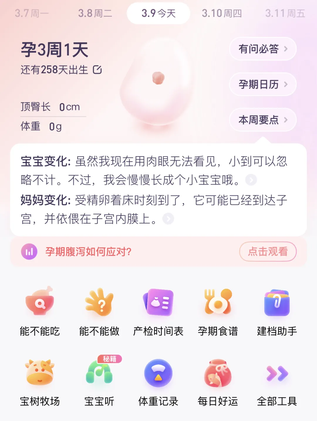 它还有一些很实用的小工具,比如查询孕期什么能吃、什么不能吃;什么能做、什么不能做;孕期的食谱参考等等,能让初次怀孕的准妈妈受到不少启发。