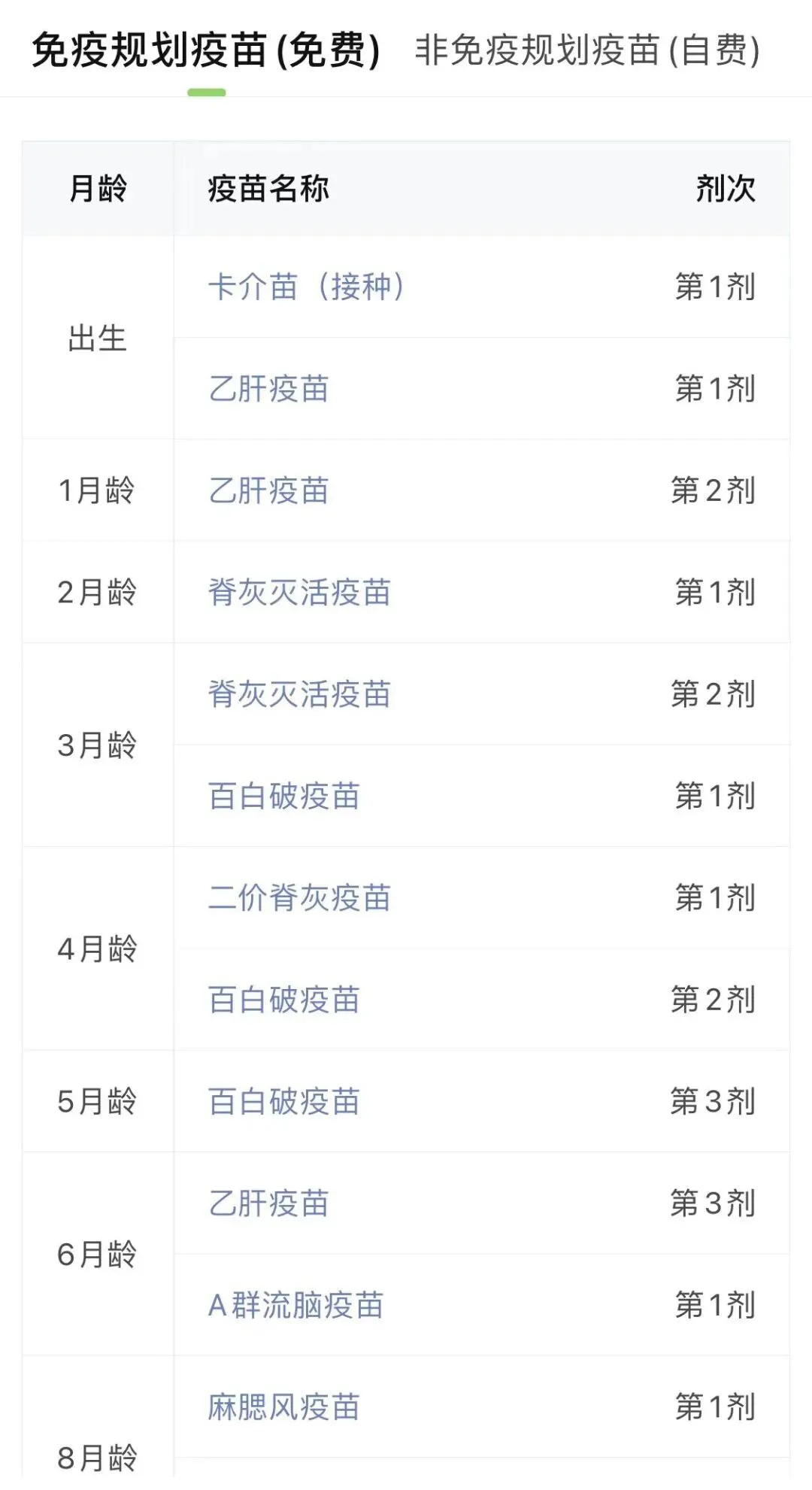 小豆苗APP里还有详细的宝宝接种疫苗时间表,懒人妈妈只要对照着它就可以了,而且它还很贴心地为我们分好了免疫规划疫苗和非免疫规划疫苗。
