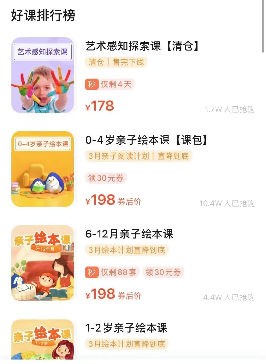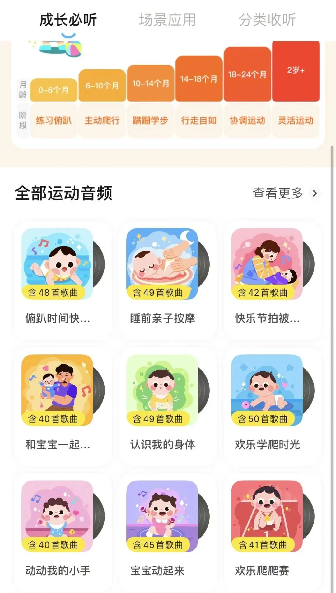 这个软件适合0-6岁的小朋友,里面不仅有按年龄和兴趣分类的花式育儿清单,还有宝宝精品绘本课程,已经按照宝宝的年龄进行了细致的划分。