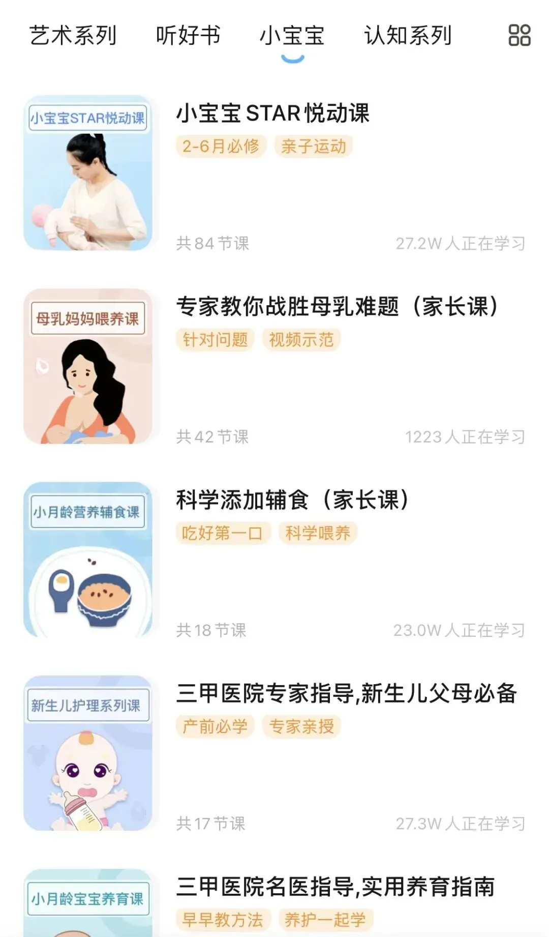 此外,小步在家除了有适合孩子的早教内容,还有专门给爸爸妈妈收看的各类专家指导课程,让我们宅在家里也可以轻松获取各种育儿知识。