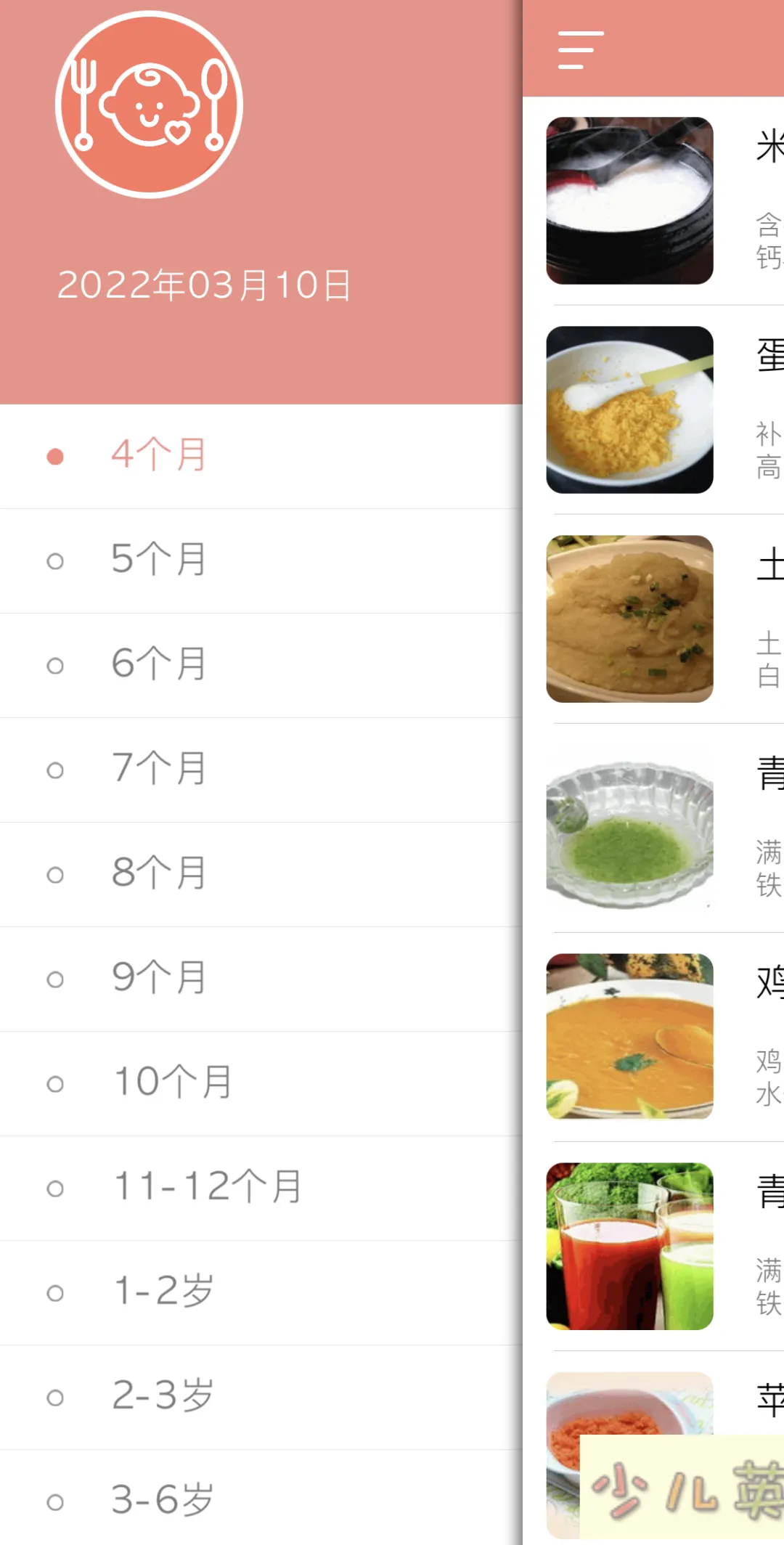 如果你也有这方面的困扰,只要下载这个婴儿辅食的APP就不必再为做辅食发愁啦。它里面按照宝宝的月龄有很详细的分类,多大的宝宝适合吃什么食材以及做法都会有具体的介绍和步骤。
