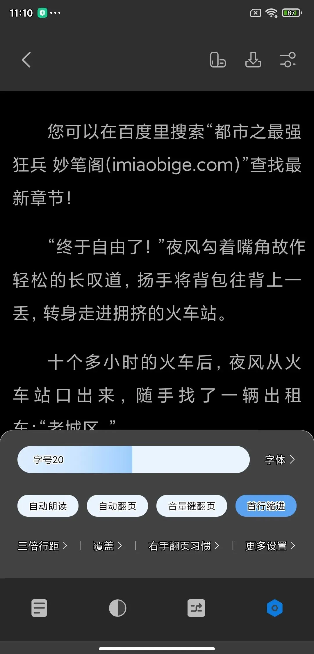 你可以设置朗读小说,字体、行距、颜色等都可以自定义设置。
