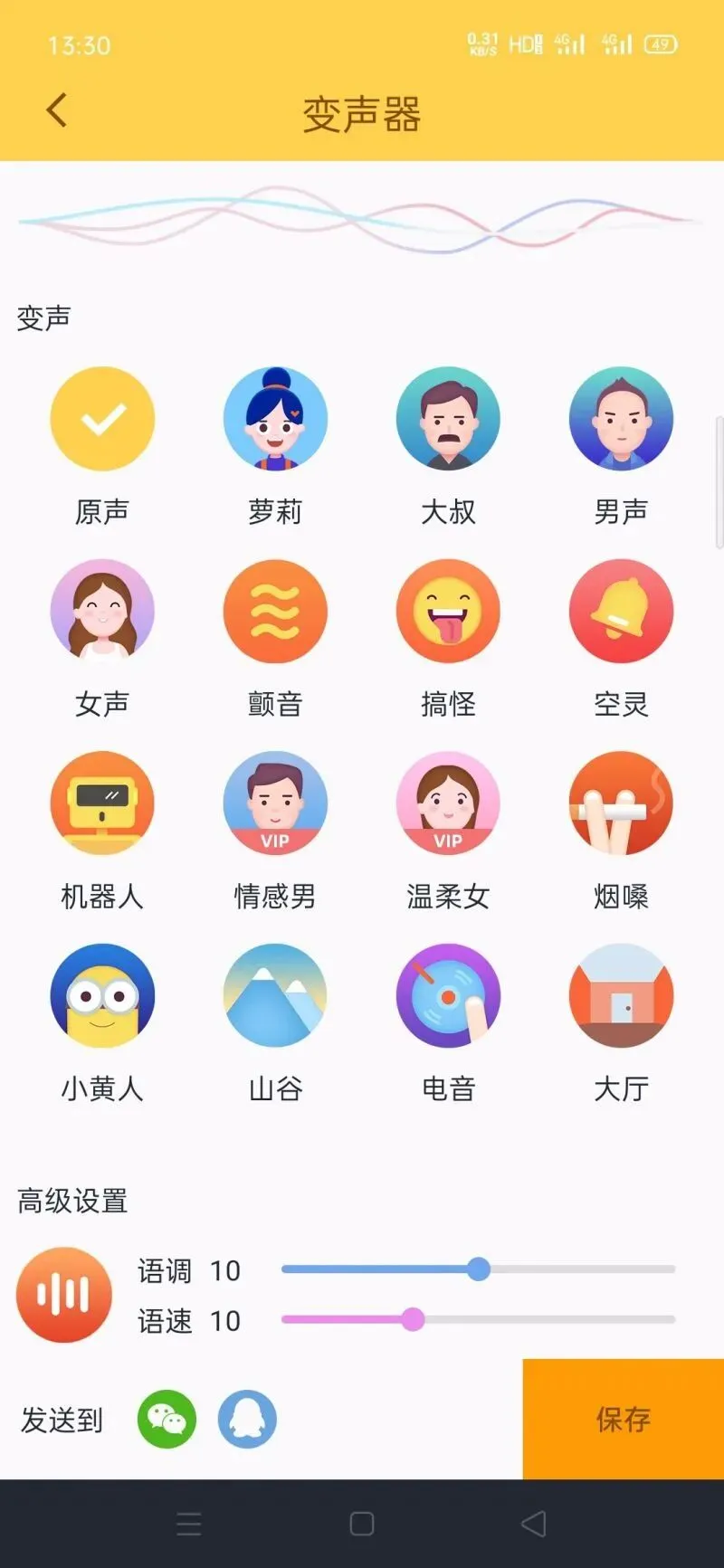 功能顾名思义,就是个变声软件,可以将自己的声音变成各种其他的声音。