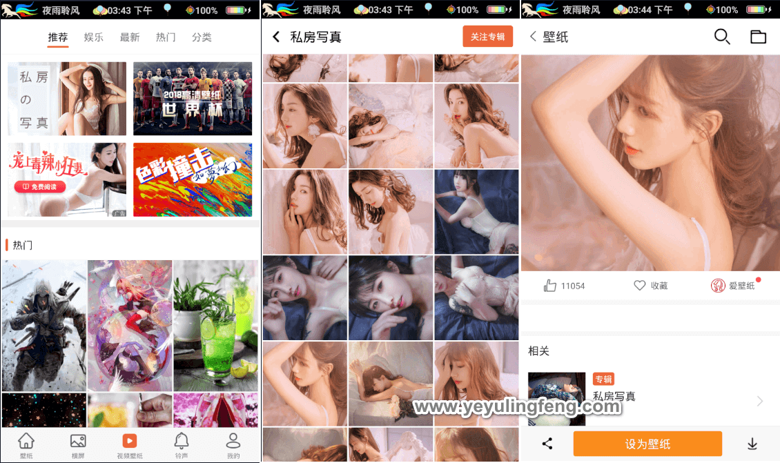 无论是手机还是电脑,大家都会设置自己喜欢的壁纸为桌面使用,电脑端老夜已经搭建了一个电脑壁纸站供大家使用,这里附上传送门:点我传送。至于手机端老夜今天也为大家介绍一款非常出名的壁纸库应用,爱壁纸HD(Love Wallpaper HD)是最专业的壁纸类应用,提供海量优质高清壁纸。不过免费的东西往往是最不让人省心的,广告推送已经是免费软件的重灾区了,经过民间大佬@礼君的荣耀绿化过的去广告版非常的清爽简洁,干掉了大量的广告,还有自带官方的启动页广告。