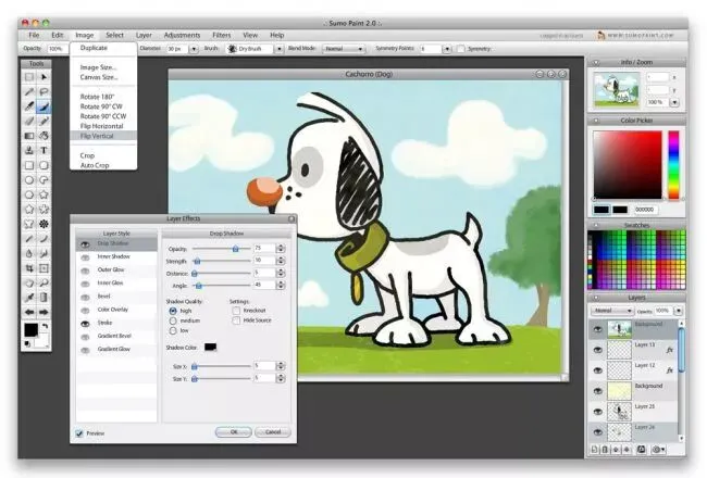 Sumo Paint是一个功能强大的基于浏览器的图像编辑器。需要Adobe Flash Player才能使用此工具,因此不会在iPad上使用Sumo Paint。也就是说,它重量轻,加载速度快,免费版本非常实用。