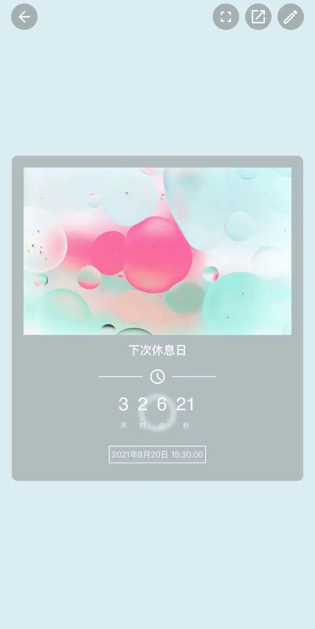 @小白好像很喜欢“和时间做朋友”,她还推荐了我一款画面清新可爱的倒计时与纪念日软件。她说,她最常的用法就是设置一个“离下一次休息日还有X天”。