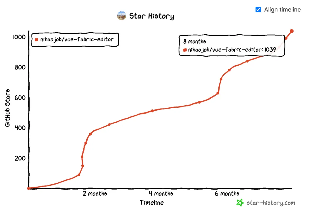 最初,帮朋友实现了一个基于 Fabric.js 开发的图片生成工具,后面将核心功能抽离并开源到了 Github 上,获得了一些关注。