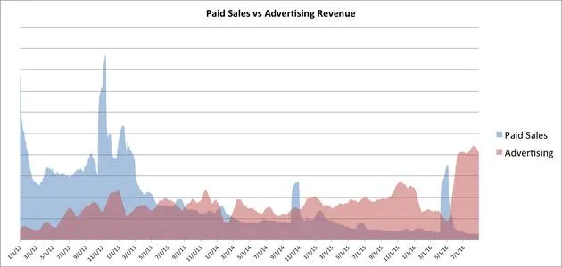 这张堆叠图充分说明:为应用付费的人越少,广告就越多