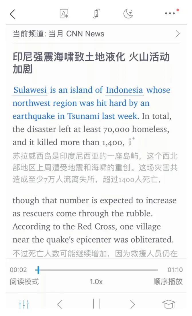 APP里可以设置1、阅读模式:伴随语音阅读中英文材料;2、AB复读:随心设置AB两点,之间的内容循环播放;3、听写模式:根据听力材料将语句填写完整;4、测验模式:听力填空。简直能当听力测验题使用!除了学习功能外,还能找到BBC和Ted,新闻纪录片音乐文化电影也全都有,超级全能,安利给你们!