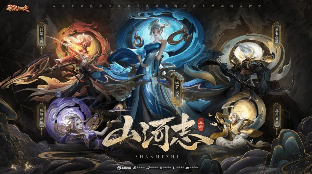 太华-伽罗,岱宗-典韦,飞衡-韩信,幽恒-甄姬,玄嵩-庄周,仰以观于天文,俯以察于地理,《王者荣耀》以“东方骨架,现代解构”的核心设计理念致敬祖国大好河山。
