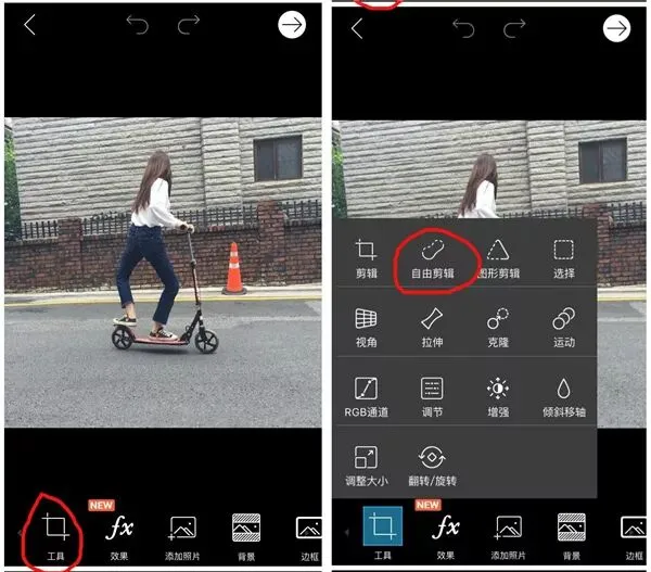 接下来就是“视角”,通常情况下,我们拍照因为多为抓拍,没有条件考虑很多,而视角这一功能就可以调节图片的视觉角度,可以给人不同的视觉感受。
