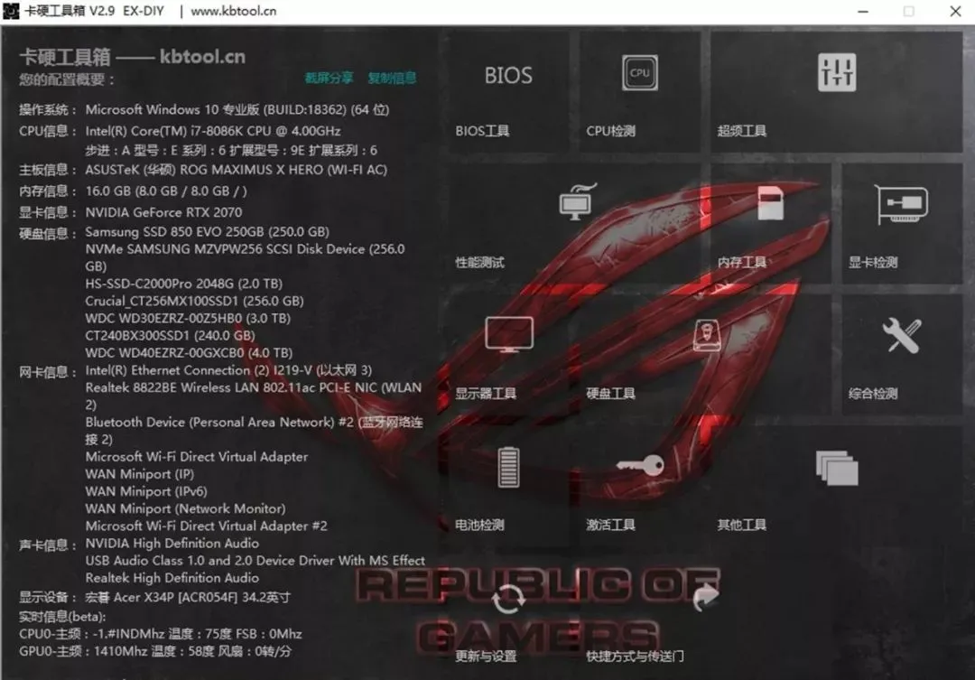 ①既然大家都玩儿电脑,那就一定避不开它:卡硬工具箱(原 卡吧工具箱),集成了各种硬件检测工具,不用自己手动一个个去下了,比较适合刚入门的玩家,