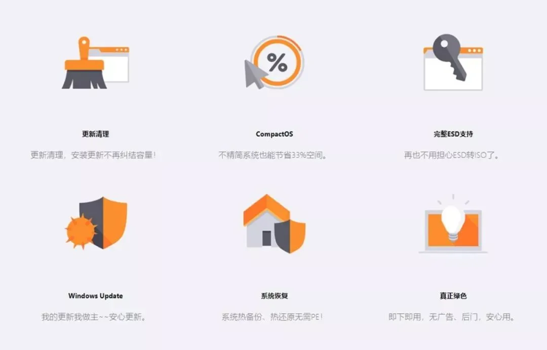 比如精简菜单任务栏、自定义主题、改系统安全等级、禁用Defender、改资源管理器为此电脑、隐藏小箭头和7个文件夹、改右键菜单等,非常全面。