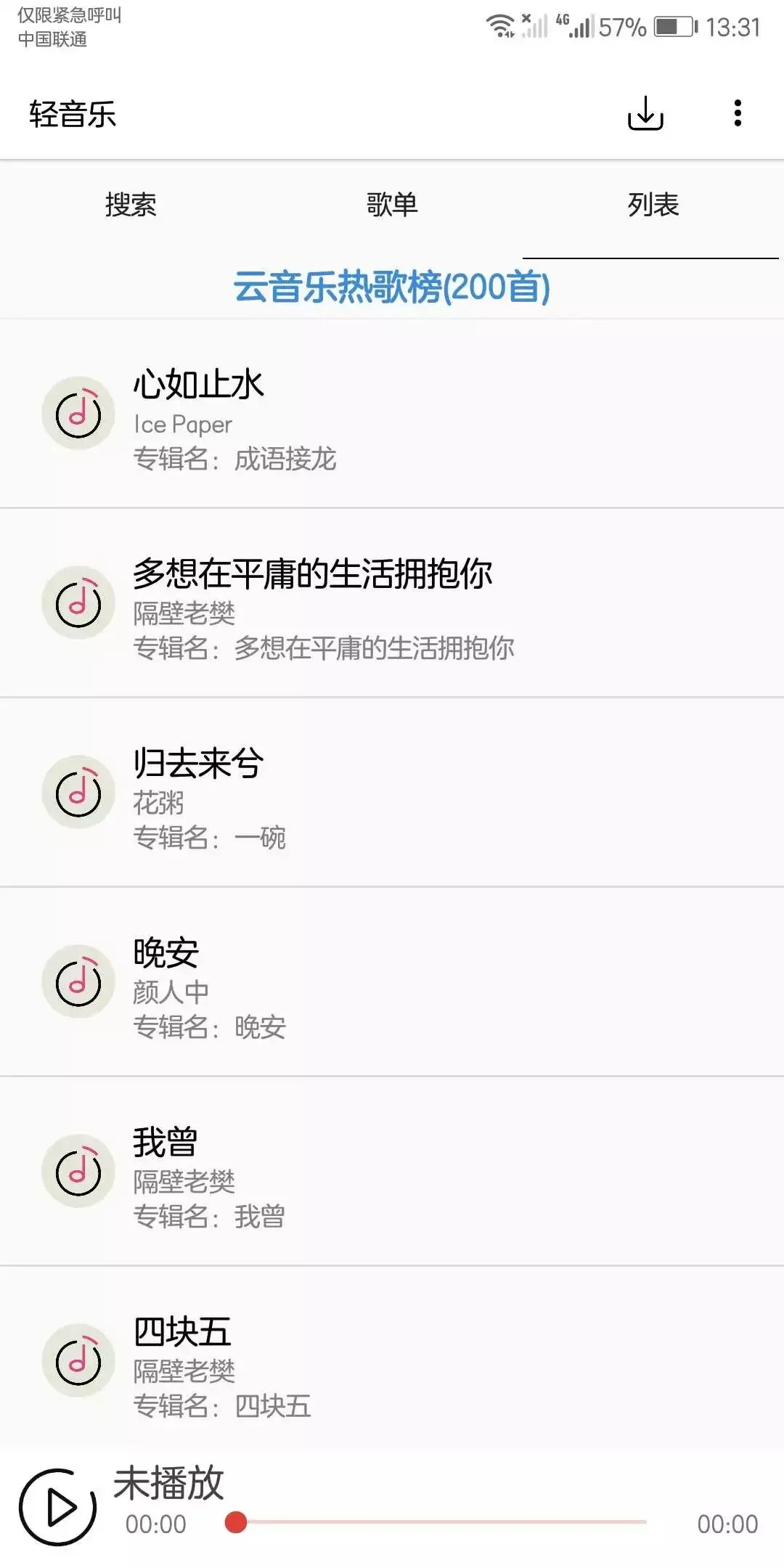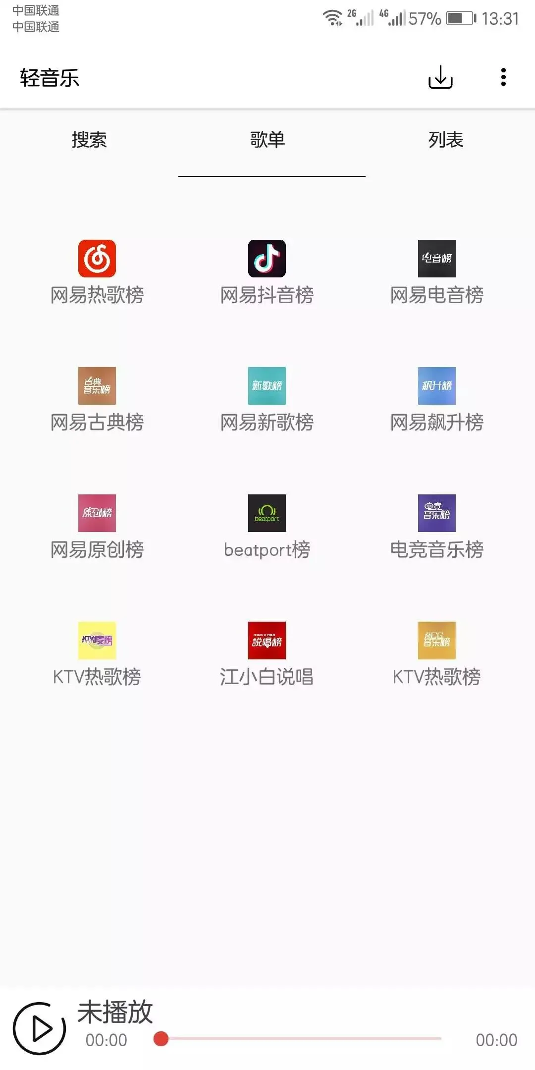 除了音乐下载功能外,软件还有各大音乐平台排行榜查看的功能。大家可以点击歌单,然后在界面内选择自己喜欢平台的排行榜进入。接下来就可以挑选歌曲,选择下载了!也是十分方便的!