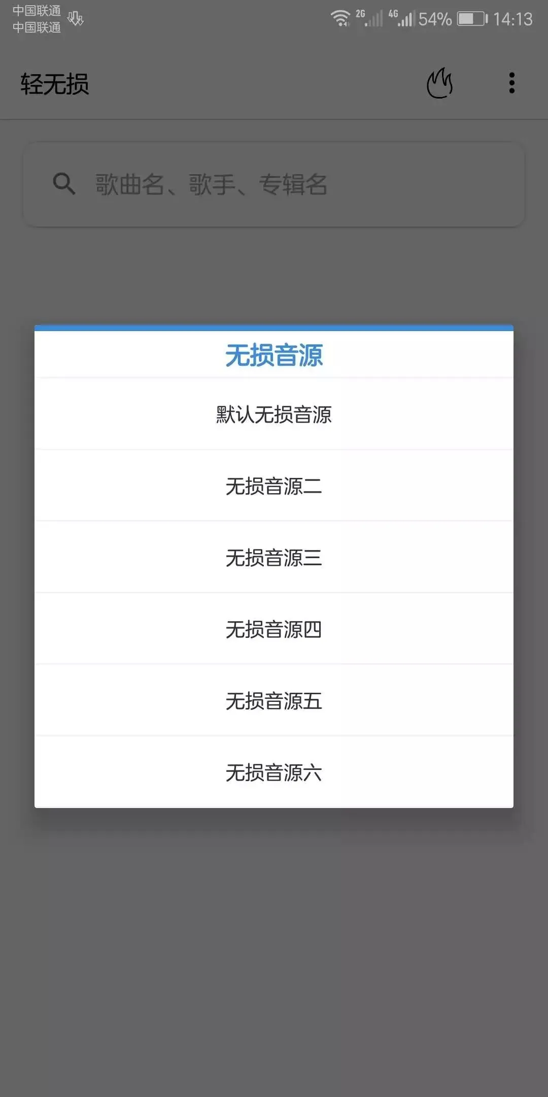 接下来这款软件就比较厉害了!它可以专门下载无损音乐!没错,其他的下不了!进入软件后我们可以看到界面同样是十分的清爽,最上方是搜索框,我们点击右上角的小火焰图标可以切换搜索源!这里大家可以看到搜索源也是非常的多!选择完成后我们这里直接搜索喜欢的歌曲或者歌手即可!大家可以看到搜索结果全部都是无损的!非常棒!