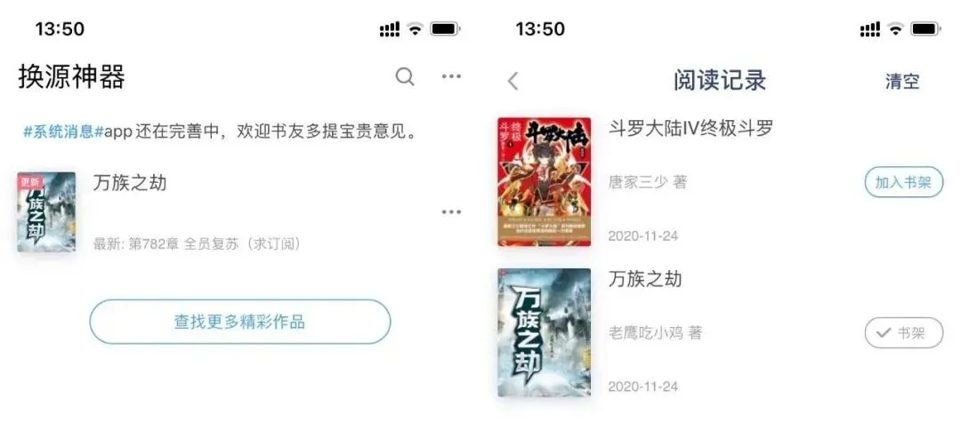 碰到自己喜欢的小说可以直接加入书架,也可以在阅读记录查看,追起书来还是非常方便的。
