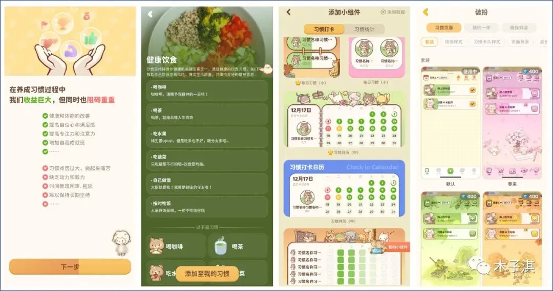 它还支持的功能包括:习惯小组件、习惯统计、唯美的页面装扮和主题、数据同步。