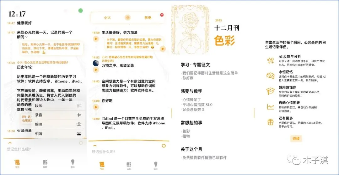 它如一股清流,小清新风格,颜值很高,支持 AI 驱动,智能主动梳理和反馈,还支持心光水晶球,可以用作情绪倾述和你的心灵树洞。
