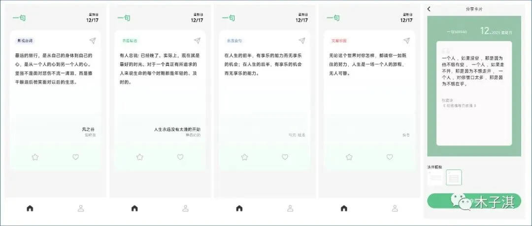 最后,它还支持的功能包括:句子收藏、多模板句子图片。