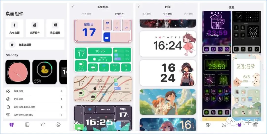 它支持多种桌面小组件,包括:创意动图、照片墙、移动画廊、拼图、时钟、时间、日期、每日一言、系统信息、倒数日、快捷启动等,每类桌面小组件包括多种尺寸和多种风格样式的桌面小组件。