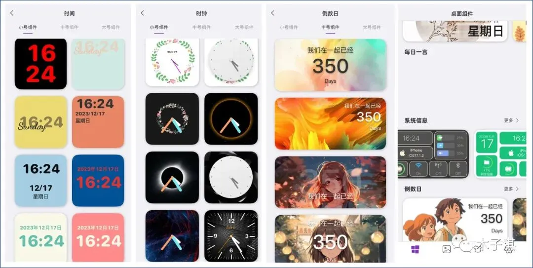 时钟和时间组件都支持几十种唯美样式,倒数日组件支持设置倒数和计数、事件名称、事件日期、通知、背景、颜色、字体样式等。