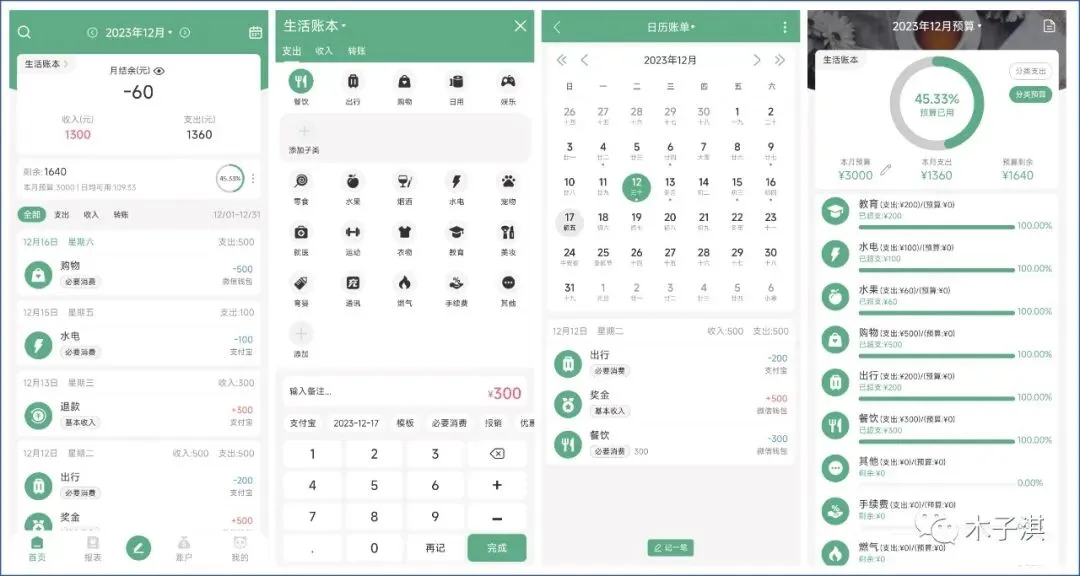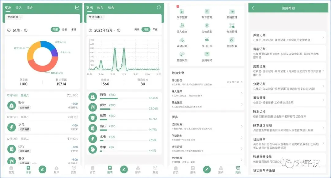 它极简设计,小清新风格,功能全面丰富,支持的功能包括:自动记账、周期记账、分期记账、账户管理、账本管理、账本预算、借入借出、报销管理、存钱计划、记账对账、日历账单、记账统计、饼图线图、定时提醒、多级分类、自动备份、导入导出。