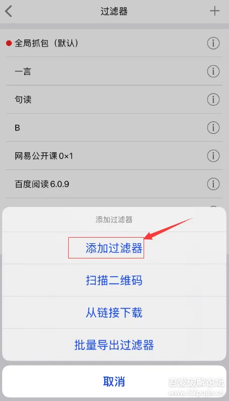 替换好后一路返回然后保存 再选择你写好的过滤器开启抓包 去打开[句读]