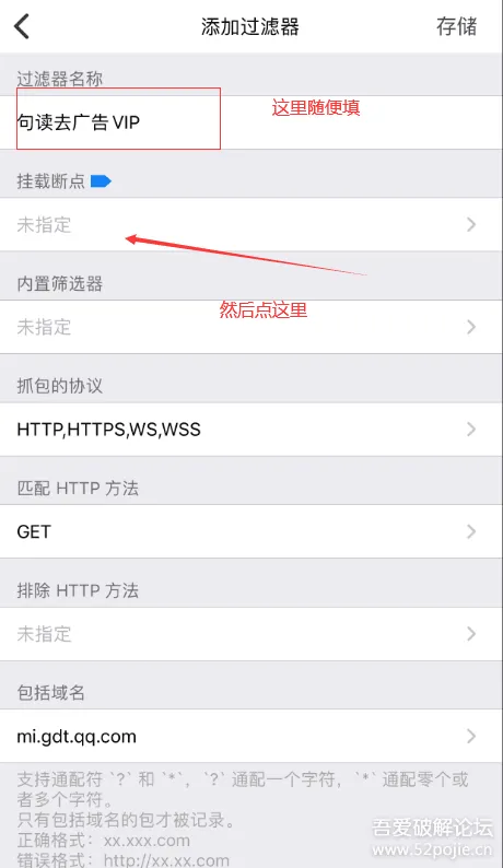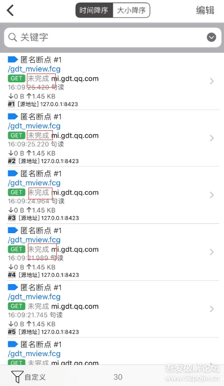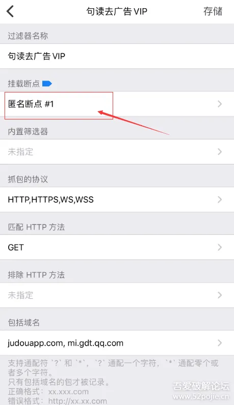 然后一路返回最后保存,选择你刚刚写好的过滤器开启抓包,再打开[句读]试试看,发现没有广告了,再看一下锤子的抓包记录,匿名断点下面的链接地址显示未完成 说明成功了。
