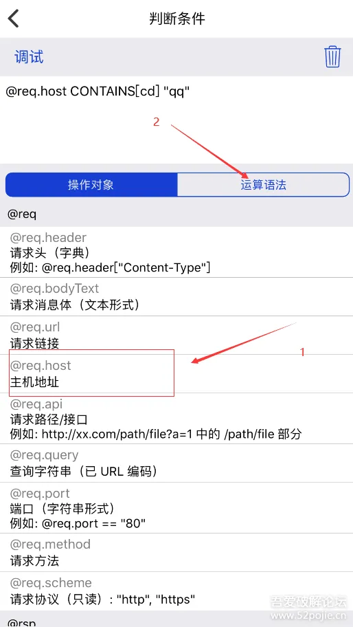 一般的写法是@req.host==“www.baidu.com” 都是小写的引号前有空格要记得删掉