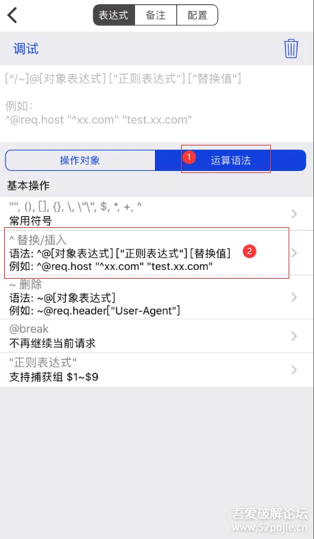 然后新建-右上角编辑-新建添加表达式(条件满足时)-运算语法-选第二个^替换/插入-倒数第二个^@rsp.bodyText – 点击左上角的调试–调试表达式#1