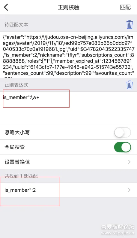复制is_member”:false 粘贴到下面的正则表达式删掉false 改成\w+